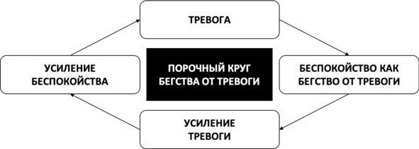 Запомните: чем большую тревогу вы испытываете, тем больше вы беспокоитесь, но чем больше вы беспокоитесь, тем большую тревогу вы испытываете. В этом и состоит порочный круг бегства от тревоги (см. рис. 17).
