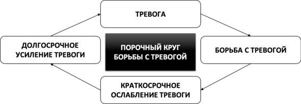 Таким образом, осознанное или неосознанное отрицание, подавление или избегание тревоги приводят к мимолётному и временному облегчению, однако в долгосрочной перспективе усиливают тревогу (см. рис. 18).