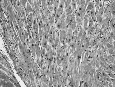 Что же общего среди всех этих состояний и что определяет их патогенетическую взаимосвязь с ФП? Очевиден механизм нарушения электрических процессов в результате ремоделирования миокарда. Данные патологоанатомических исследований подтверждают это. Так, при гистологическом исследовании ткани предсердий умерших пациентов с ФП часто выявлялись следующие изменения (см. рис. 5):