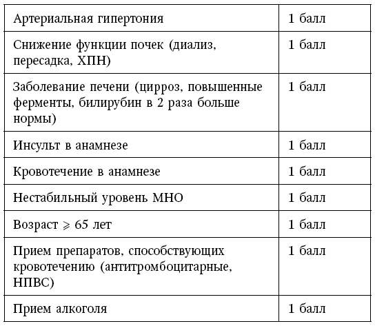 HAS-BLED шкала оценки риска кровотечения у пациентов с ФП