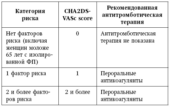 Шкала CHA2DS2-VASc и рекомендации по выбору антитромботической терапии