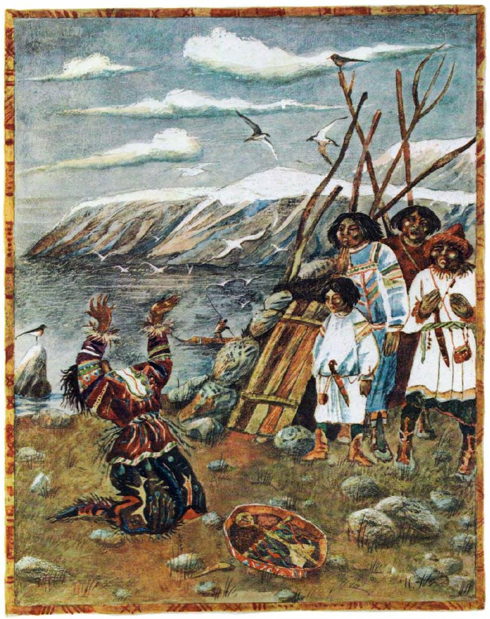 Около шаманьей землянки весь посёлок югорски собрался. Смотрят, как шаман у дверей по земле катается волосы на себе рвёт, кричит что-то.