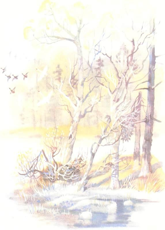 Ранним утром снимаются с места, вожак в голове летит. А есть и такие, которые остаются: здоровьем слаба выйдет или позднышки выведутся Жаль на них глядеть. Кричат, бедные, когда мимо них стая за стаей летит. На Студеной все околачиваются. Плавают-плавают, пока забереги настынут, потом в полыньях кружатся Ну, этих уже я из жалости пришибу. Што ей маяться-то, все равно сгибнет Лебеди у меня тут в болоте гнезда вьют. Всякой твари свое произволенье, свой предел Одного только у меня не хватает, родной человек: который год прошу ямщиков, штобы петушка мне привезли Зимой-то ночи долгие, конца нет, а петушок-то и сказал бы, который час на дворе.