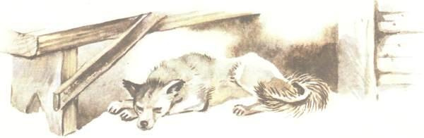 Лежит Музгарко под лавкой, положил голову между лапами и только глазами моргает.