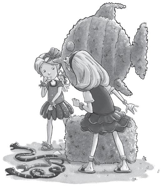 Девочки спрыгнули с плота-омара, вылезли из бассейна и пошли к дому. Их путь лежал мимо топиаров Ирис. Нэнси больше всех понравилась скалярия. Но как только девочка стала подходить к ней, чтобы рассмотреть поближе