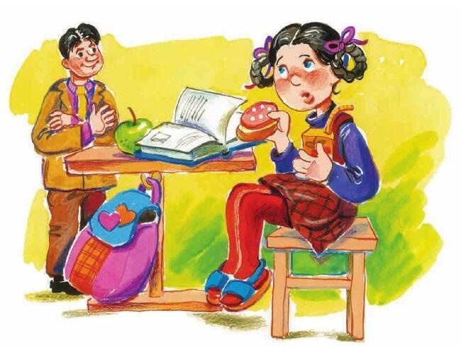 Ты опять завтракаешь на уроке? Валя быстро спрятала завтрак в парту. Что будет, сказал учитель, если все будут завтракать на уроке?