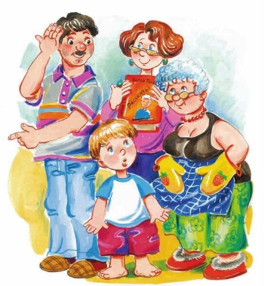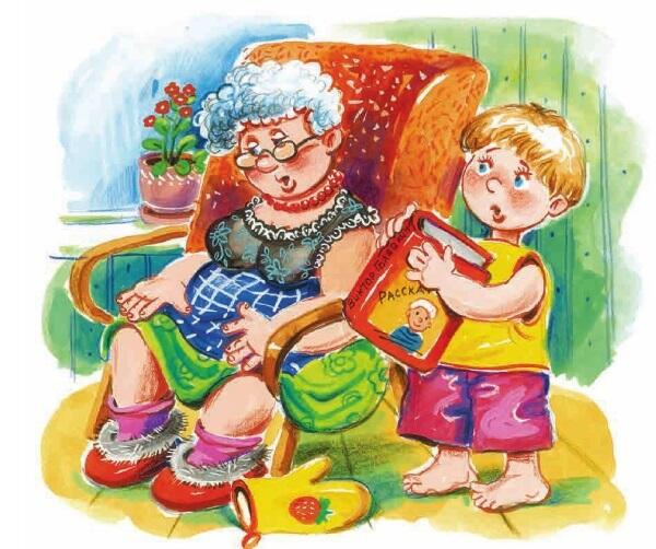 Он сунул книгу бабушке, но она зевнула и выронила её из рук. Он поднял с пола книгу и опять отдал бабушке.