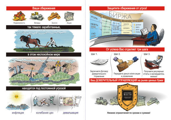 На основе Доверительного Управления (Д. У.) использовать колебания спады и рост цен на рынках ценных бумаг, сырья, недвижимости.