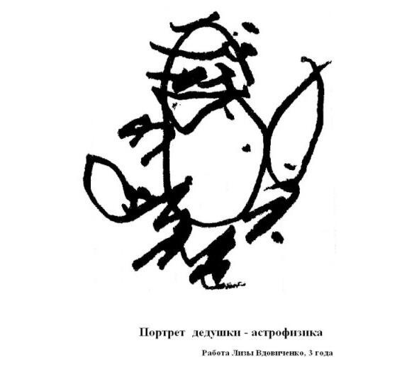 Это портрет моего дедушки. Он звёзды читает. Я его ещё в детстве нарисовала, когда мне всего три года было.