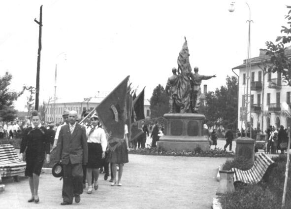 Марш пионеров к Вечному огню. Слева К. Лукьянюк