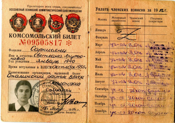 Комсомольский билет секретаря комсомольской организации консервного завода