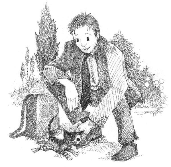 Клео потёрлась о его ноги. Папа рассмеялся и присел её погладить: