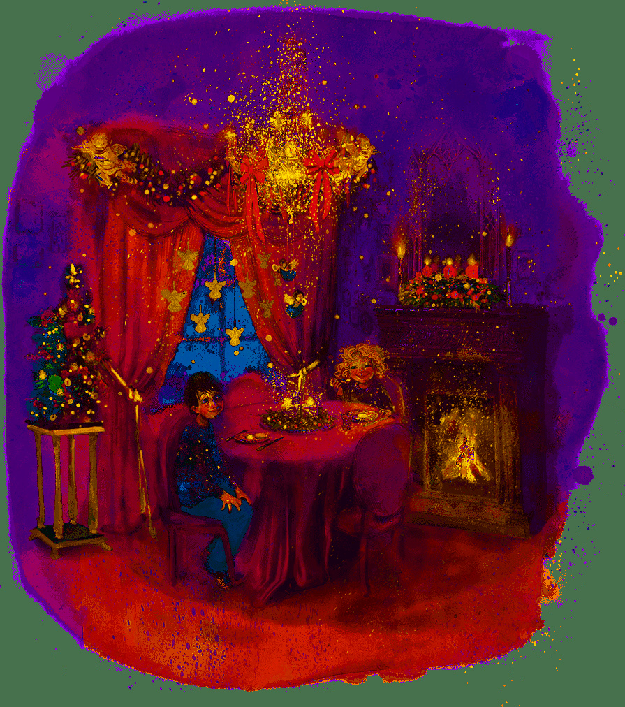 Я всё тёр и тёр, пока не убедился, что все тёмные пятнышки пропали. Потом я водрузил подсвечник в центр обеденного стола и залюбовался. Таким он и должен быть: блестящим, отливающим золотом.