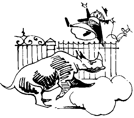 Ворота зоопарка были закрыты. Недолго думая старуха перемахнула через забор и направилась к клетке с носорогом.