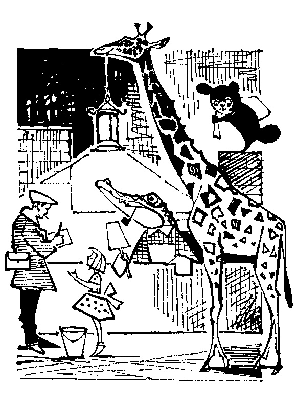 Работали строители до позднего вечера. А когда становилось темно, жирафа брала в зубы фонарь и освещала строительную площадку. Только не надо было говорить ей за это «спасибо», потому что она обязательно бы сказала «пожалуйста» и фонарь тут же упал бы на вашу голову.