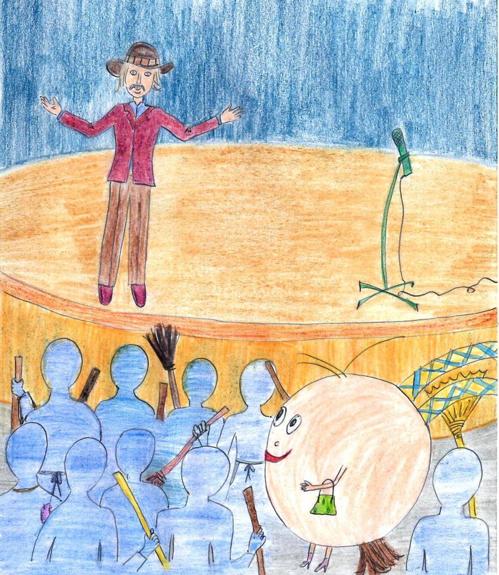 И вот настал торжественный день, когда мужчина с усами это оказался помощник режиссёра объявил из всех детей лучшую пятерку. Вначале все собрались за столами, ели, пили, шутили и пели, потом танцевали, и, наконец, прозвучали имена лучших слуг. Одной из них оказалась Земля! Она была в восторге! А в завершении празднества победители вызвались прибрать за всеми зал, как настоящие слуги.