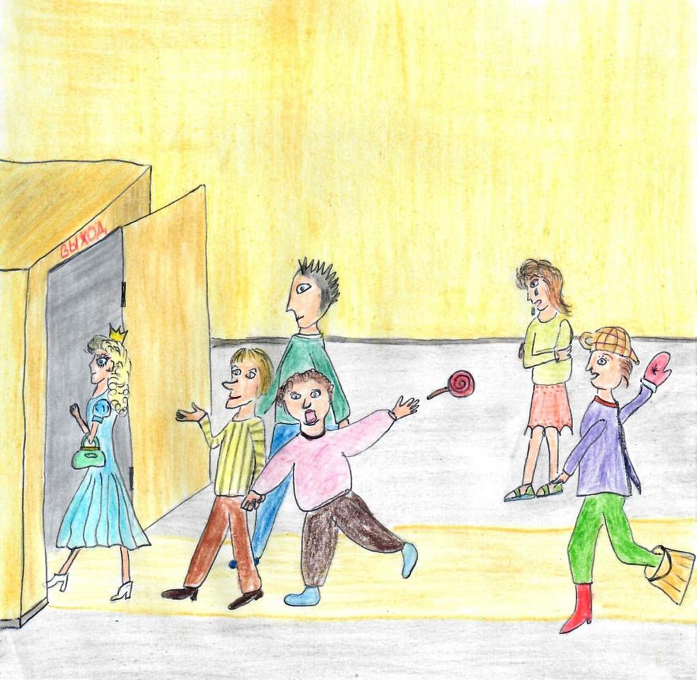 Когда Земля перешагнула порог киностудии, то сразу оказалась в просторной комнате, где суетилось и бегало туда-сюда множество людей. «Ого, как много желающих! Да тут со всей округи, видимо, собрались», пронеслось у неё в голове. Но не успела она рассмотреть и части собравшихся, как появился мужчина с усами, похожий на человечка с рекламного листка, только выше ростом. Он объявил, вовсе без рупора, что они ищут актёров на роль слуг.