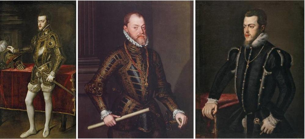 Старший сын Карла V Филипп II (21 мая 1527 13 сентября 1598) взошел на престол огромной империи своего отца в самом расцвете своих сил. Он часто действовал в интересах Испании и дома Габсбургов, так, например, он вступил в брак с дочерью португальского короля Марией (приходившейся ему двоюродной сестрой).