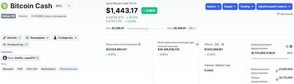 9 место Bitcoin Cash (BCH)