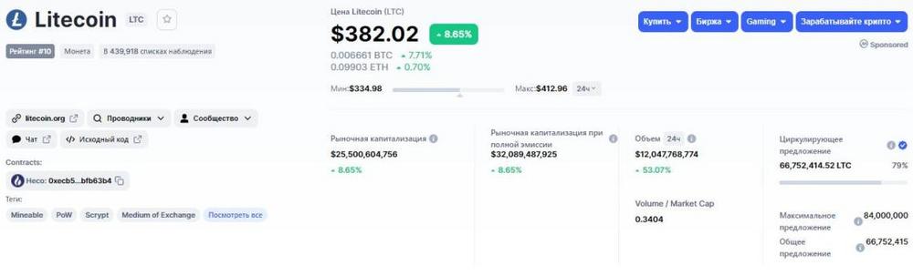 10 место Litecoin (LTC)
