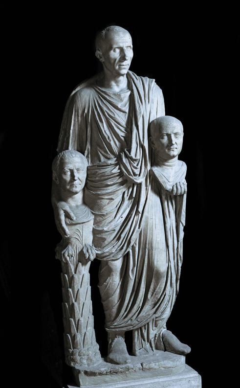 18. Римская мраморная скульптура начала I в. изображает мужчину, держащего две портретные головы, возможно, его предков. Кто этот человек неизвестно (есть разные версии, но в любом случае голова статуи была заменена в более позднее время), однако здесь отражается та важнейшая роль, которую играл портрет в культуре римской знати.