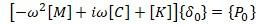 Реакция конструкции с затуханием колебаний на периодическое воздействие силы с угловой частотой ω находится решением системы уравнений [16,с.187].