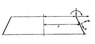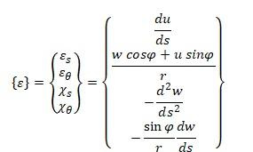Изгибные и мембранные напряжения в оболочке корпуса аппарата однозначно определяются величинами обобщенными деформациями (искривления и растяжения срединной поверхности) [14,с.259]. Перемещения каждой точки срединной поверхности известны. Так, перемещения срединной поверхности оболочки под действием осесимметричной нагрузки однозначно определяются компонентами u и w по касательной к нормали поверхности.