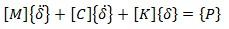 В этом уравнении [K] матрица жесткости объединенной конструкции, {δ} матрица всех узловых смещений, {Р} матрица всех узловых нагрузок.
