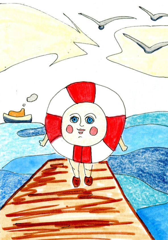 Тут к ним подошла О, одетая в красное и белое, потому что работала на взморье спасательным кругом. Вдруг кто начнет тонуть.