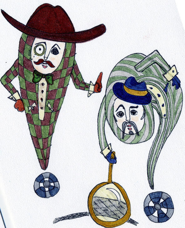 Знаменитых сыщиков было двое Восклицательный знак и Вопросительный знак. Они давно соскучились по загадочным преступлениям, которые можно расследовать. Буквы жили так тихо и спокойно, что приходилось от тоски собирать пазлы с утра до вечера. Так что сыщики обрадовались пропаже перекладины. И сразу взялись за дело.