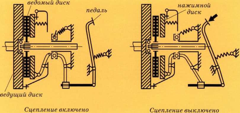 Если нажать на педаль, диски разойдутся, раздвинутся, и мотор уже не сможет вращать колеса автомобиля. Но стоит педаль отпустить, как диски пружинами снова прижмутся друг к другу. Мощная сила трения, возникнувшая между дисками, заставит их вращаться, а вместе с ними придет в движение и привод автомобильных колес, и сами колеса.
