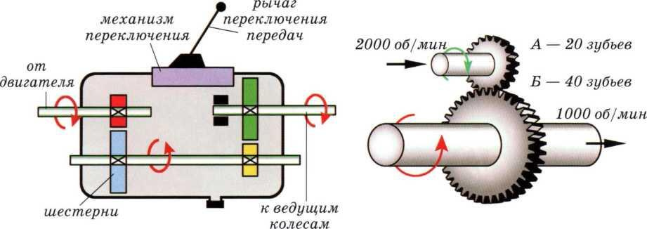 Для этого автомобили имеют коробку передач. В ней набор зубчатых колес, шестерней. К одной из них подведен вал двигателя. Вращение ее передается другим шестерням. От того как они будут сцеплены, то есть от вида, номера, передачи, зависят нагрузка двигателя и скорость вращения ведущих колес автомобиля, а стало быть, и скорость его самого.
