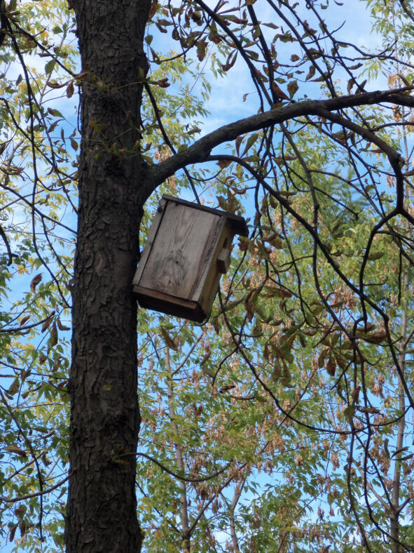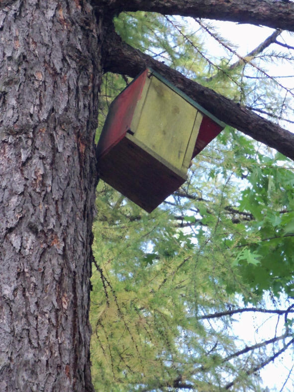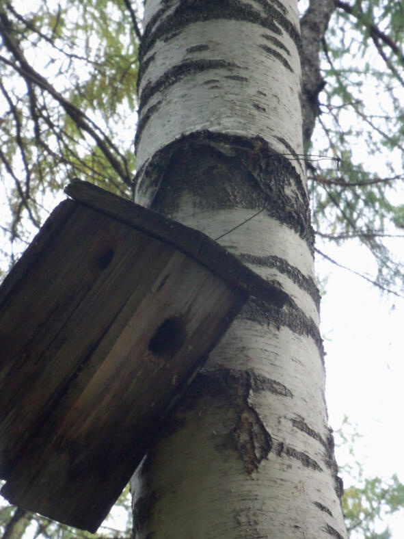 Приведу примеры на фотографиях скворечников, неудачно подвешенных. Тут есть и образец неправильного дна, прибитого снаружи от стен. И перекосившийся домик, в котором кто-то пытался долбить еще один леток. Дятел? Это еще одна причина посещать «свои» домики для птиц потом. Птичка ничего потом исправить не может, а человеку это по силам. Даже, если что-то было неправильно сделано сначала. Главное делать!