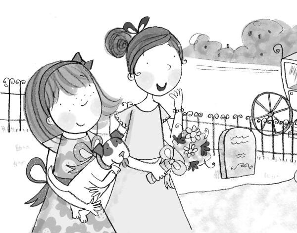 Макс и дедушка поспешили к церкви и вскоре скрылись внутри её, а Элли и Лила остались снаружи, у дверей. Лила, в своём нарядном платье и с красивым букетом, выглядела превосходно, а Элли стояла рядом с ней, с Проказником вместо букета на руках, и очень волновалась.