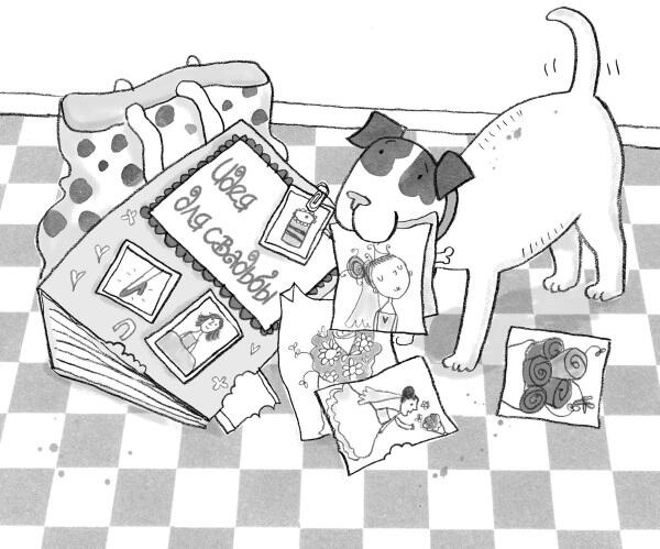 Я выведу его погулять в сад, поспешно сказала девочка, осторожно извлекла картинки у щенка из пасти и протянула их рассерженной тётушке, которая положила их обратно в папку.