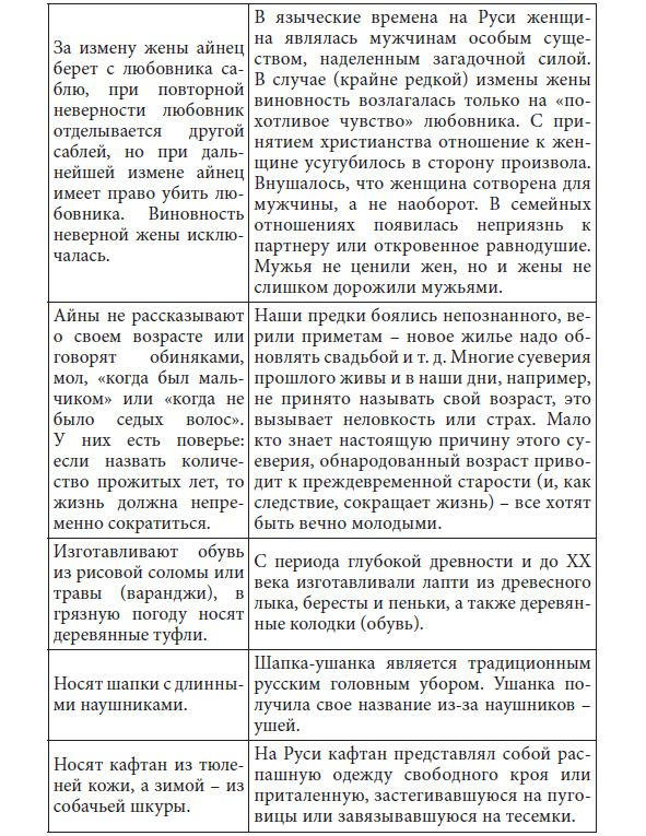 Кстати, М. М. Добротворский считал женщин айнов малоплодовитыми, всего каких-то четыре-пять детей. Ох, Михаил Михайлович, посмотрели бы вы на «плодовитость» большинства современных русских женщин!