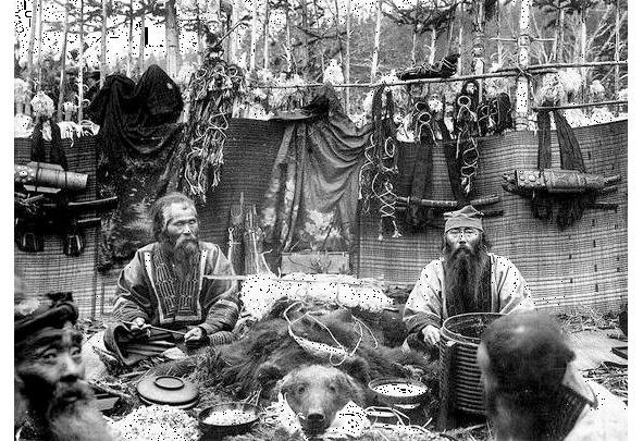 Народы Сибири, включая айнов, проводили медвежий праздник как наиболее важное событие в жизни людей. Айнские охотники не убивали этих диких животных они должны были выкормить и вырастить маленького медвежонка. Затем уже взрослое животное айны должны задобрить, устроить ритуальную охоту, освежевать его тушу и после всей печальной процедуры провести извинительные обряды.
