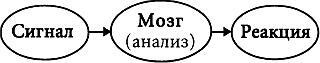 Действительно, просто. Но есть ли в этой схеме ответ на поставленный вопрос? Можно ли сказать, что мы знаем теперь, как работает мозг? Ничего подобного! Ничего мы не знаем! Мы написали «мозг», мы сказали, что информация перекодируется, смешивается, анализируется, мы постановили, что в отношении результата этой работы мозга мозгом же принимается какое-то решение. Вот что мы сказали.
