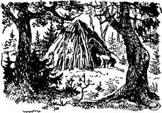 В землянке царил утренний полумрак. Даже привычный глаз с трудом различал в нем фигуры людей и звериные шкуры, развешанные по стенам. На полу лежали толстые оленьи меха. Они служили постелями. Жилище внутри было похоже на внутренность большого шалаша или чума. Коническая крыша посередине была подперта крепким столбом. К земляным стенам жилища прислонен изнутри частокол из еловых жердей. Для прочности их связывали лыками или гибкими прутьями ив.