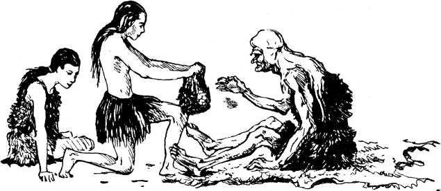Обычай требовал всякую пищу предлагать сперва старшим. Лучшие куски рыбы матери отнесли в землянку Родового огня. Там жила сама Каху, Мать матерей поселка Чернобурых. Там жили старухи хранительницы огня.