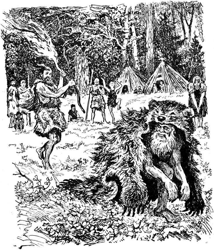 Крики и хохот перешли в веселую песню про глупого вурра. В хоровод втолкнули Волчью Ноздрю. На него со смехом накинули медвежью шкуру. Теперь он должен был изображать самого «страшного эаха». Ноздря сейчас же вошел в свою звериную роль. «Медведь» с ревом бросался на девушек и женщин, а те с визгом разбегались во все стороны, прятались за кусты и за летние шалаши. Актер вскоре перестал быть актером. Он в самом деле чувствовал себя медведем. Да и все окружающие признали это.