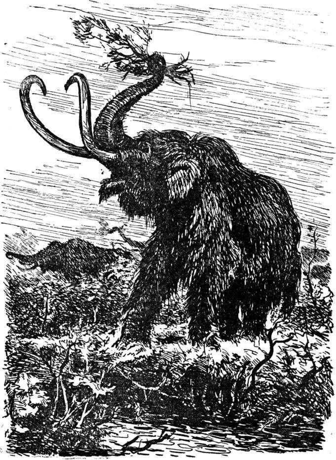 Действительно, это были мамонты. Они медленно пробирались по течению узенькой речки, густо заросшей корявыми кустами. Речка была узка, и воды издали не было видно. Только полоска береговых ивняков обозначала ее извивы. Хуммы ломали хоботами ветки и отправляли их в свои ненасытные рты.