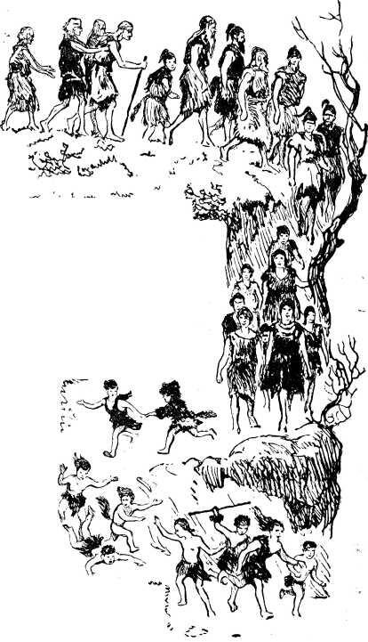 Через несколько минут весь поселок зашевелился, как растревоженный муравейник. Из выходных дыр остроконечных домов один за другим вылезали люди. Женщины, старики, девушки и дети окружили быстроногих гонцов и наперерыв расспрашивали о том, что случилось.