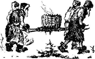 Первый снег лучшее время для облавы. В назначенный день жители обоих поселков сошлись на берегу у большого костра и двинулись в лес за Волчьей Ноздрей и другими разведчиками. Четыре старика тащили на носилках плетеный кузов, обмазанный внутри глиной. В кузове были насыпаны горячие уголья из Родового костра. Старики несли его степенно и шепотом бормотали колдовские слова.
