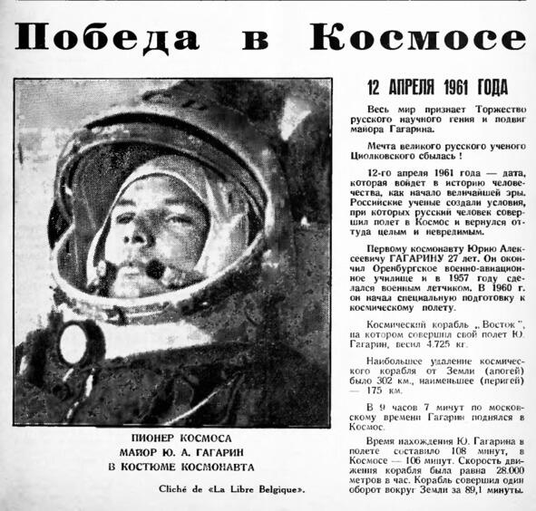 Одна из первых газетных статей о полете Ю. Гагарина в космос