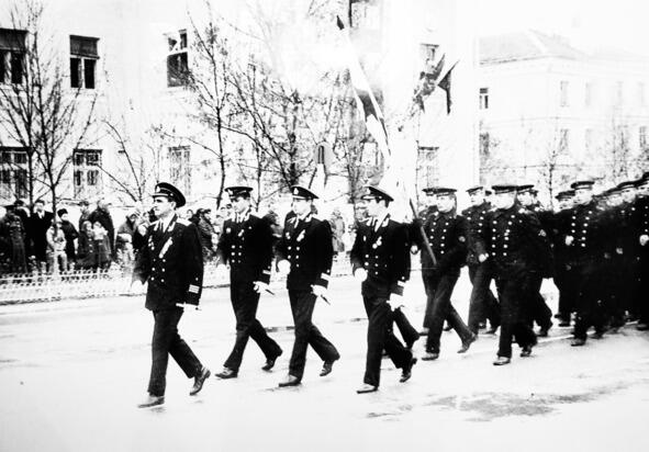 Военные моряки 3,4 и 5 групп на параде 7 ноября 1968 г. в г. Ленинск.