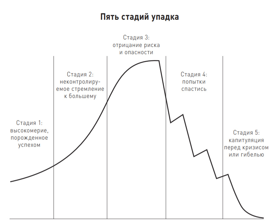 Все это порождает интересные вопросы: существуют ли ясно различимые стадии упадка? Если да, можно ли выявить его признаки на ранней стадии? Можно ли остановить падение и возобновить рост, и если да, то как? Есть ли точка невозврата?