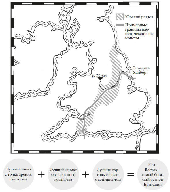 Англия до англичанК 55 г. до н. э. в Риме уже много лет ходили смутные слухи о загадочной земле за пределами Европы, населенной людьми, которых греки называли претаниками или бретаниками. Она была известна главным образом как источник олова жизненно важного металла, с помощью которого можно было превратить медь в латунь или бронзу. Финикийские купцы, контролировавшие этот привлекательный торговый маршрут, держали свои секреты при себе, так что, когда Цезарь вторгся на остров с территории только что завоеванной Галлии, он знал лишь то, что бритты ведут дела с галлами, что здесь можно найти олово и что ближайшая область этого острова называется Кантион.