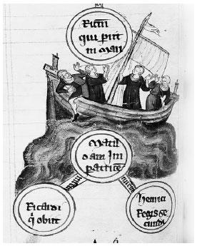 Вильям Мальмсберийский«Белый корабль» идет ко дну. Ок. 1321. Британская библиотека. Cotton Claudius D. ii, fol. 45v; G7001790