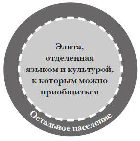 Колониальная АнглияК 1180 г. английская элита заслужила иное отношение со стороны своих хозяев, сумев резко перестроиться на французский язык и культуру. Это типично для любой колонии. В обычной стране дело обстоит так, как на рисунке справа.
